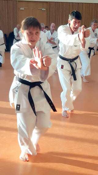 Frank Elstner (Palisander Verlag) et son épouse Anja avaient fait le déplacement depuis le Nord de l'Allemagne, pour présenter aux stagiaires allemands le nouveau livre des « 30 Shotokan Katas », que Sensei Habersetzer dédicaça sur place.